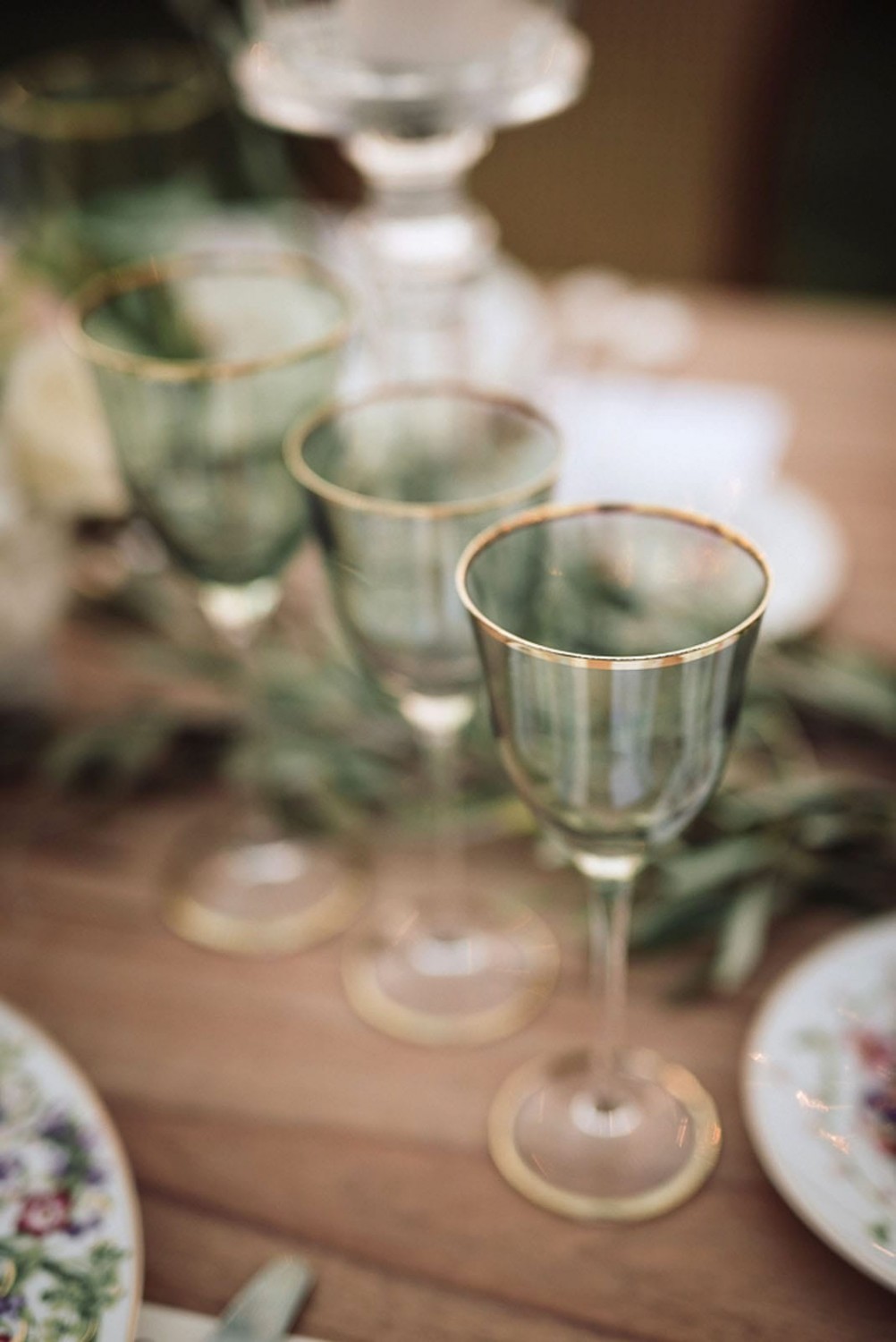 - BC27-002 – Bicchiere modello Tuscany verde con filo oro calice vino cl 24 (Conf. 25pz)
