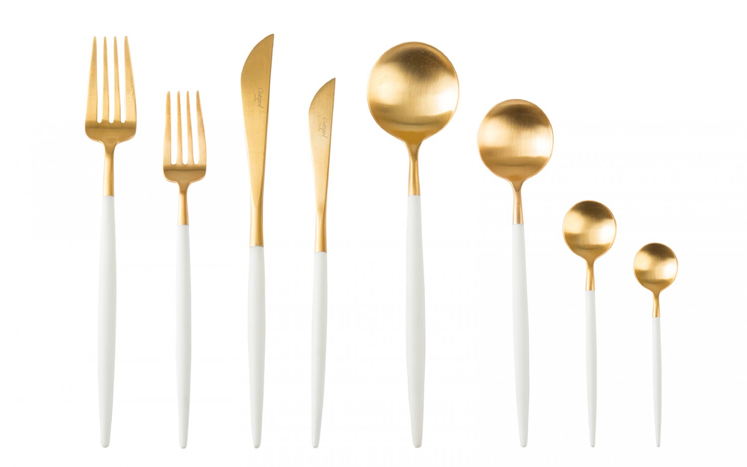 - PS18-001 – Forchetta tavola Goa bianco e oro (Conf. 10 pz)