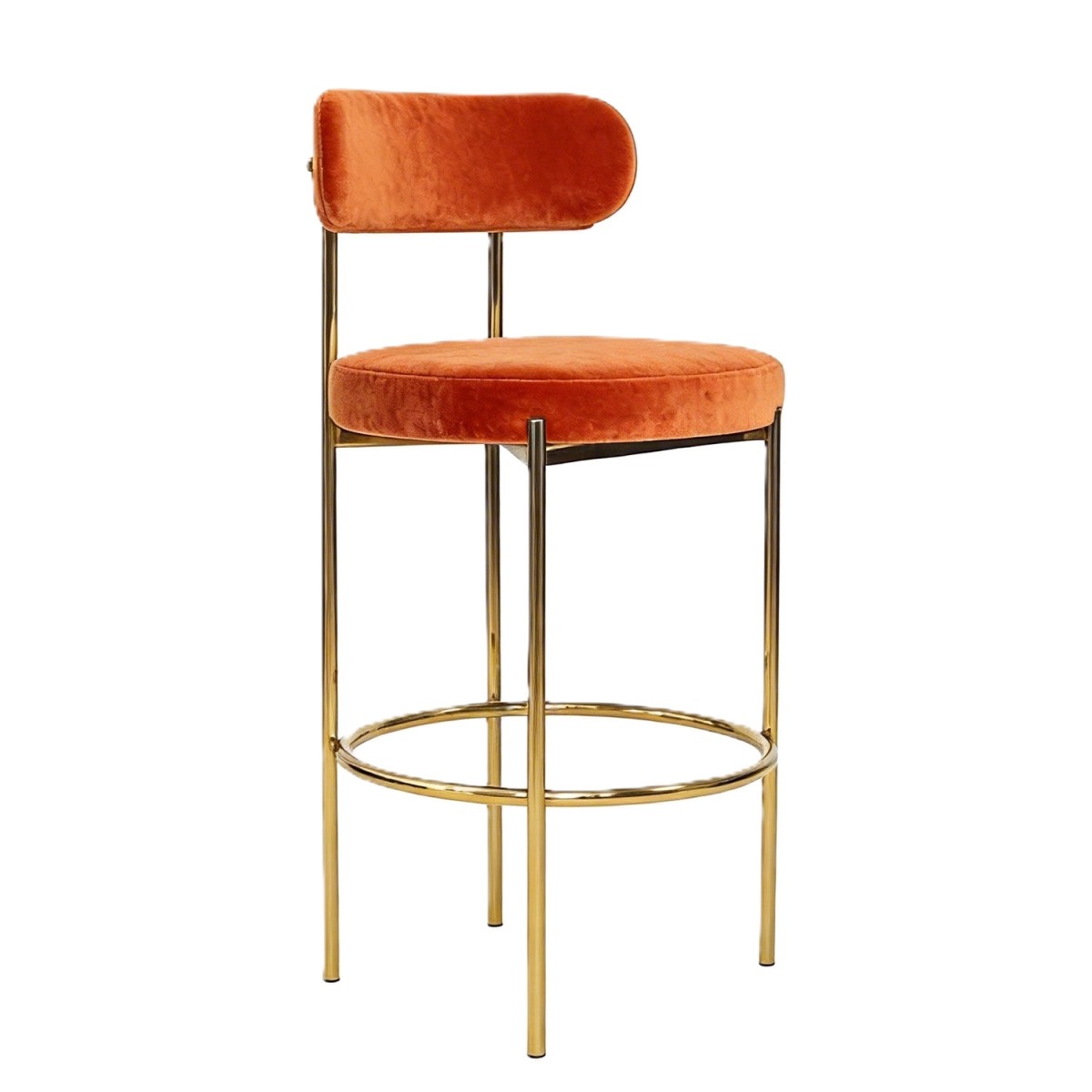 - SE55-003 – Sgabello mod. Jazz in ferro oro e seduta in velluto colore arancione