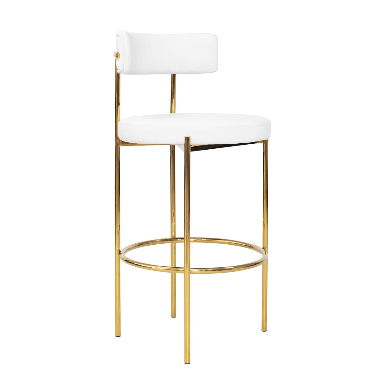 - SE55-002 – Sgabello mod. Jazz in ferro oro e seduta in velluto colore bianco