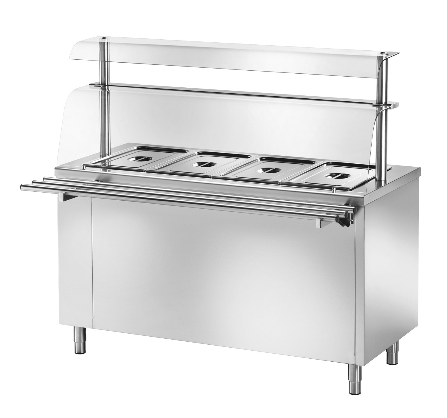 - MC01-103 – Vetrina bagnomaria a 4 teglie fredda m 0,70x1,50 altezza m 1,40 Vol 220 assorbimento 2,5 KW
