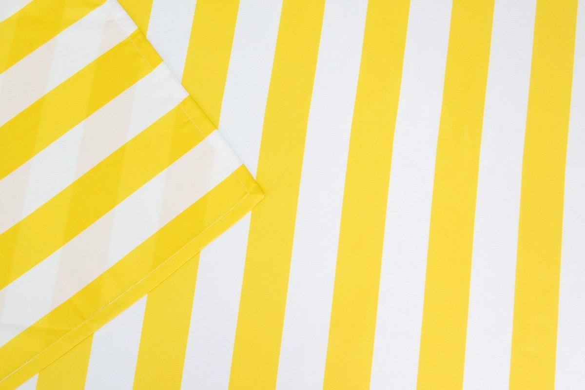 - TG97-003 – Tovaglia rettangolare a righe bianco e giallo 8x3,30 finitura a cappuccio