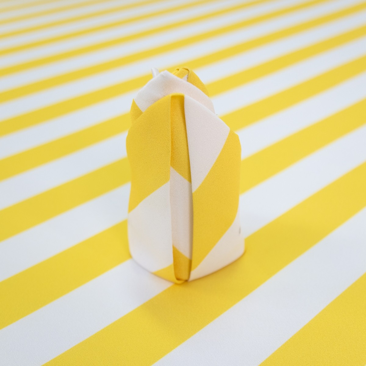 - TG97-004 – Tovagliolo a righe bianco e giallo 0,50x0,50 finitura a giorno